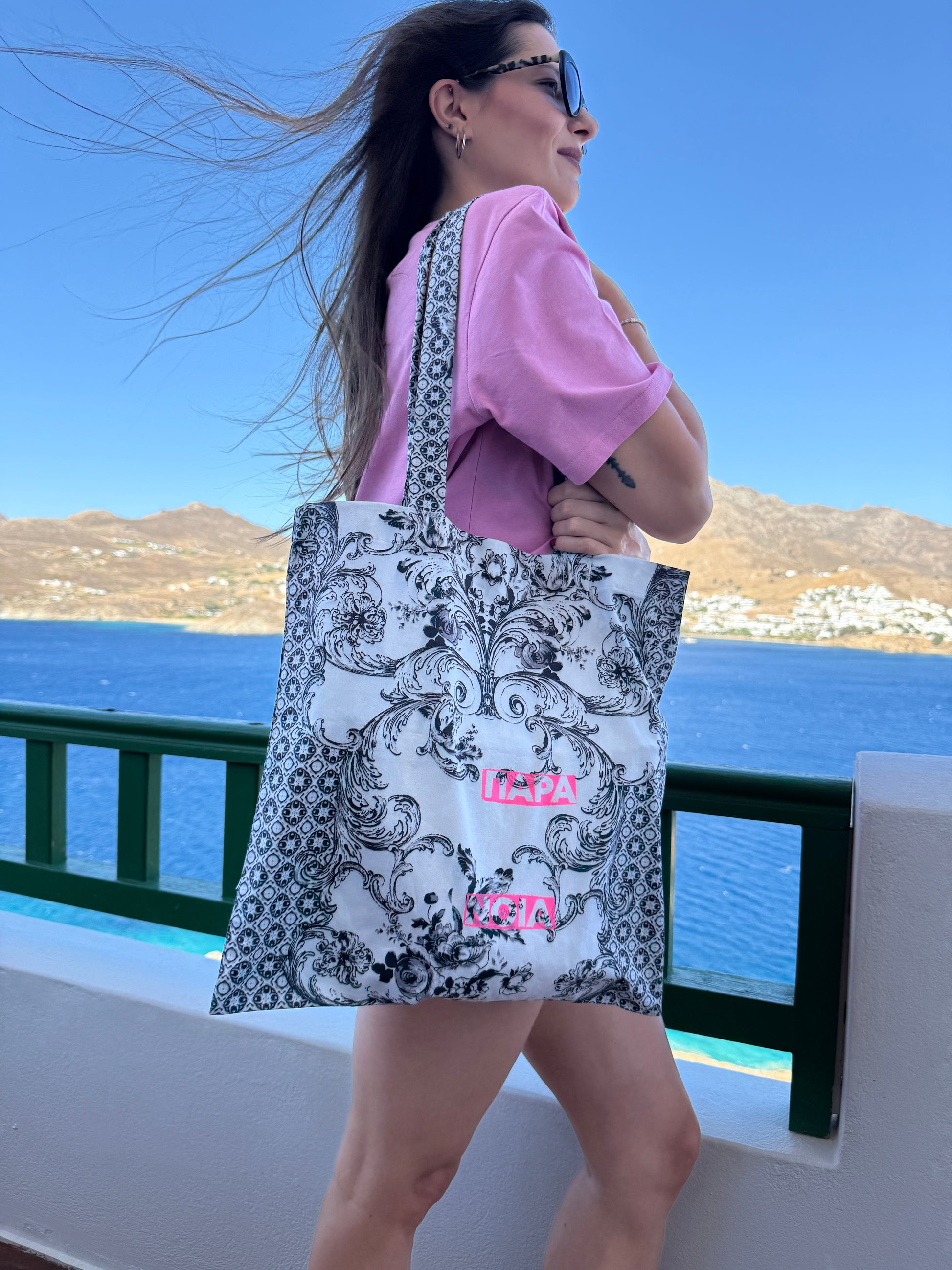 Limited edition! Hand-stiched & handprinted tote bag. Designed and printed in my silkscreen studio with water-based ink. 100% cotton.